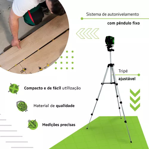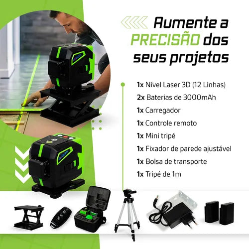 Garanta agora o seu Kit Nível a Laser Verde 3D com Tripé e Controle e dê um passo à frente em cada projeto — com mais precisão, menos esforço e muito mais resultado!